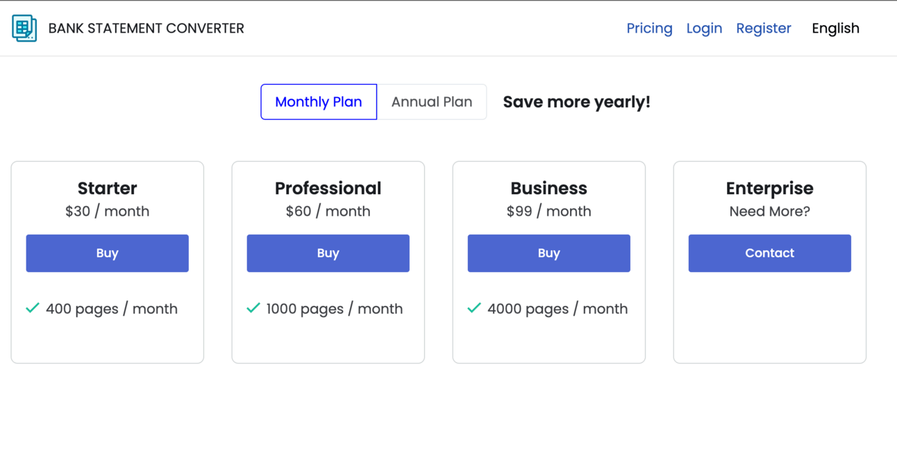 My business is a web application that lets users extract transaction data from PDF bank statements: