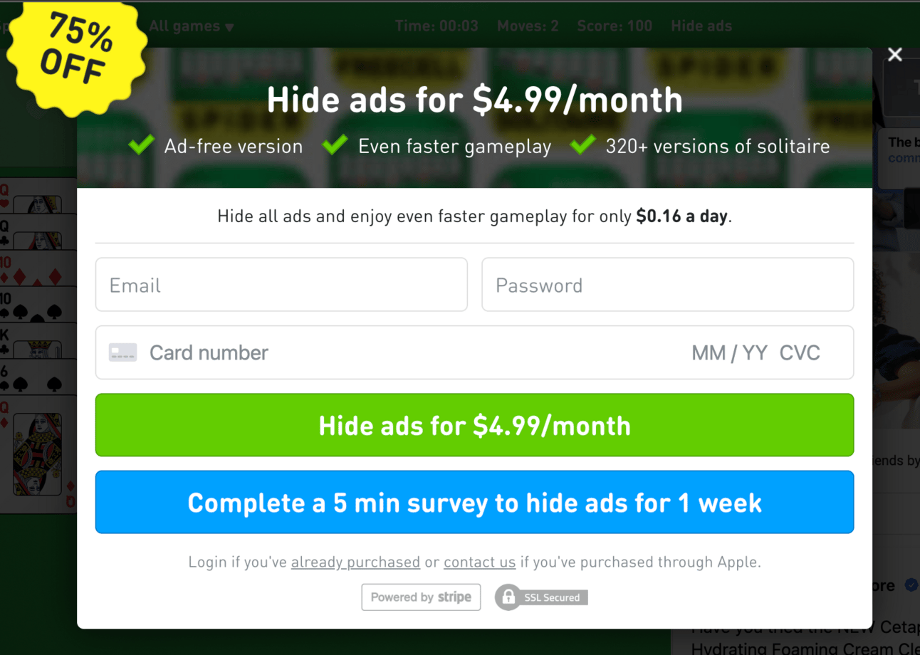 “I ended up integrating Stripe to let people remove the ads. For a blog that might not make sense, but for a solitaire website where some people play an hour or two a day, it makes sense.