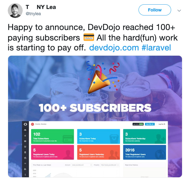 After DevDojo become a "product" website and no longer an "agency" website, it took me about 3 years to aquire my first 50 customers.