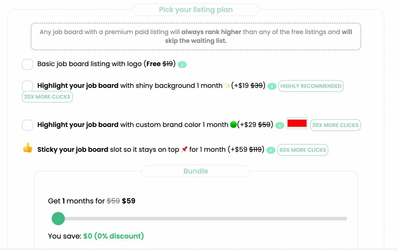 I never thought about monetizing it but again, a few months later, Pieter in a DM suggested adding premium listings with highlight, custom brand color, and sticky features. He also told me to rebrand, and who dares to not follow his advice? He even helped me to pick the domain among 3 available, so JobBoardSearch.com was the one. I also decided to include the 3 Sponsored slots: Gold, Silver and Bronze.