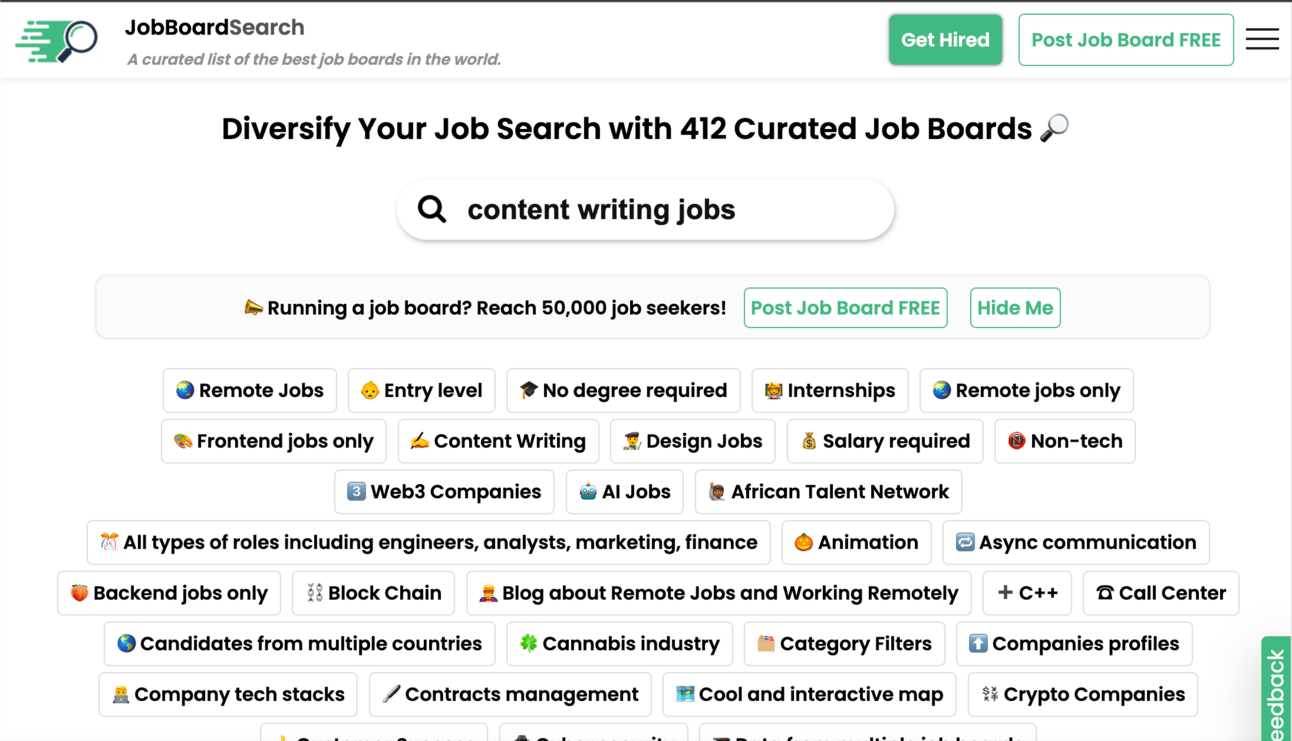 The product is JobBoardSearch.com, a directory showing websites for finding a job.