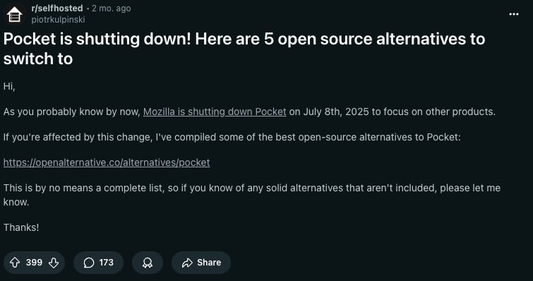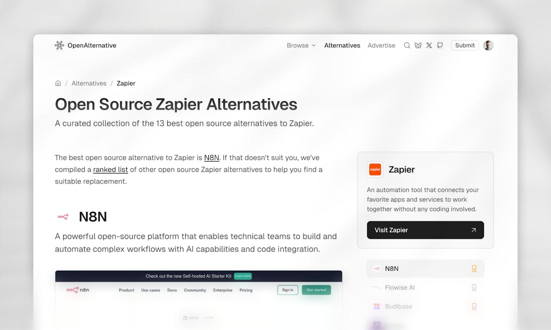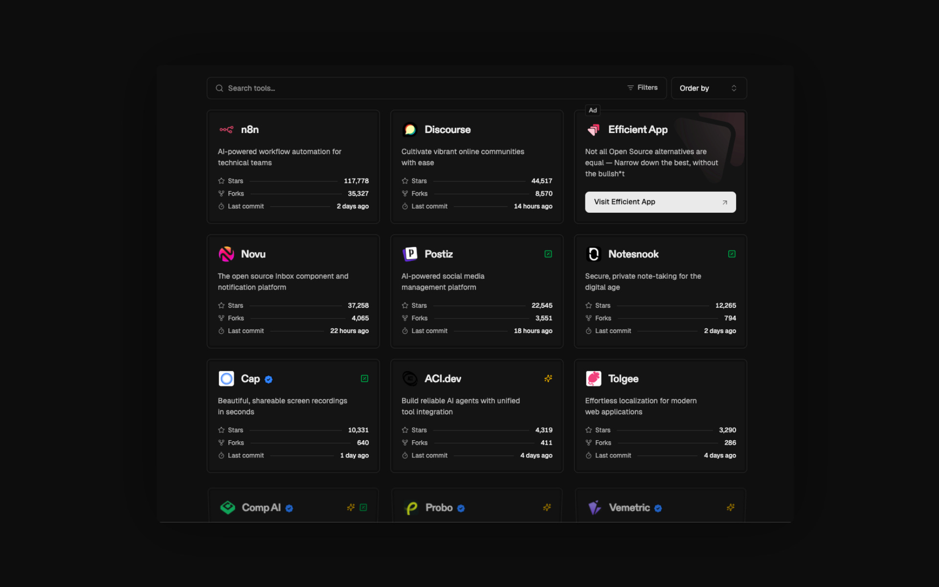 Last year, I finally decided to build one myself and quickly scraped together a website, now known as OpenAlternative.